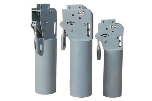 一種用于步進式加熱爐汽化冷卻裝置中步進機構所使用的恒力彈簧吊架,特征是恒力彈簧組由一組受拉彈簧、一組受壓彈簧和彈簧支架組成,滾珠軸承機構由滾珠軸承,中心軸,防塵罩和U型拉桿組成,吊板上部與上聯箱進行焊接,吊板下部安裝有滾珠軸承機構,滾珠軸承機構通過調整螺絲、拉桿與恒力彈簧組上端連接,恒力彈簧組下端通過拉桿、調整螺絲與固定在管道上的管部吊耳連接。